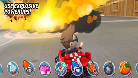 Enter the world of Boom Karts and play online against friends and players from all over the world! Drive and race on various tracks in this arcade karting game. The races are in real time, so you're always right in the middle of the crazy action!