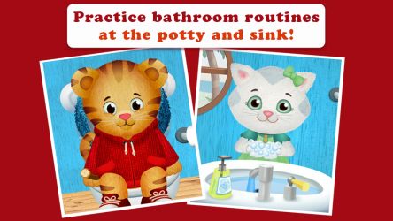 With Daniel Tiger's Stop & Go Potty app, kids can practice stopping playing when they have to go potty. Kids can learn important bathroom routines in a fun way on the potty and sink.