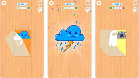 Progress through the game: As you successfully solve puzzles, you'll progress through the game and unlock new levels. Each level will present you with increasingly complex and challenging folding tasks. The difficulty will gradually increase, testing your problem-solving skills and spatial awareness.