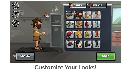 Earn and unlock various customization options for your character as well as your vehicle's garage! Look cool while racing and customize your character to your own unique style! Thousands of combinations! Then take it to the next level and customize your car with different skins and rims to make your racer truly unique!