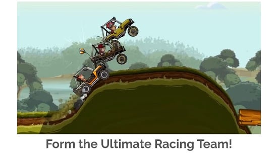 Hill Climb Racing 1's popular adventure mode also makes its return in this sequel! See how far you can travel in this endless race mode! Earn coins to upgrade your vehicle and help you out with online cup modes and multiplayer team events!