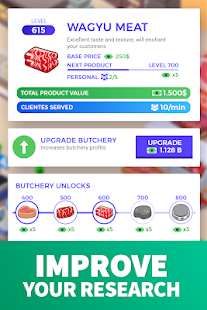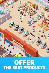 Ready to be rich?Become the richest supermarket entrepreneur!Build your own business, earn money, and become the best supermarket tycoon in the world!Start with a mini-mart and turn it into a major supermarket business. Build a bakery, sell fruit and vegetables, offer high-quality fish and meat. Run your own perfume and electronics departments. Let the customers fill their shopping carts!Research new features to improve the quality of your products, offers, and departments. Make your business grow!Become the best supermarket manager. Hire sellers and make them increase your sales and profits. Set the salary of the employees from different departments. Take care of your customers too, offering them a wider range of options and healthy products. Build a huge parking lot where they can safely leave their vehicles while they shop.Develop different marketing strategies to attract potential and existing customers. Choose the best products and improve your research to offer the best deals to your customers. Their opinion and feedback is critical to run a profitable business. Happy customers are returning customers!If you like idle and tapping games, you will enjoy this casual supermarket management game. Idle Supermarket Tycoon is an easy-to-play game where you run your own business with different product departments. Make important management decisions to build your empire and transform your small supermarket into one of the greatest in the world!