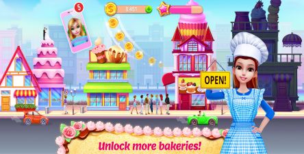You'll love this appetizing bakery story game! Help Lizzie open one cake shop after another! The more dessert stores, the better! And the more cupcakes the better for sure! Take demanding orders from customers and serve them with a smile! Make sure they get the pastry they want, whether it's cupcakes, doughnuts or cakes! Learn how to bake all kinds of desserts using a professional cake maker, based on a variety of delicious recipes! Use cake decorations in a variety of colors to make your cakes look classy! Dress up Lizzy like a real baker! Put a nice chef's hat and apron on her! Show off your dessert baking skills and win top spots in baking contests and cake shows! Prepare to bake the most delicious desserts ever, from apple yogurt shakes to princess birthday cakes to delicious cupcakes! Accumulate fame and become the premier baker in the world of this game! Keep your customers happy, accumulate wealth, and use it to open a new bakery.