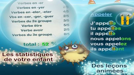 Revise your conjugation" is a complete game that revises and trains more than 300 verb conjugations according to the programs of the CE1, CE2, CM1 and CM2 classes. Immerse yourself in a fun and exciting underwater world where your child will play.