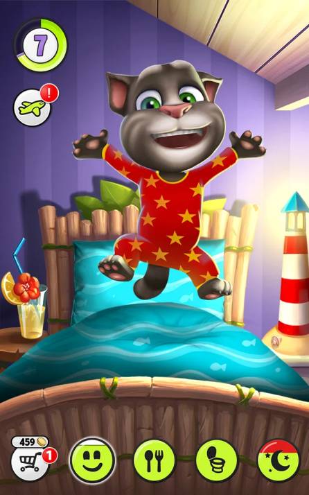 Talking Tom is a fun mobile application game where there is a pet cat called Tom. This app will be an interesting tool which can bring lots of entertainment for children. It can operate on the platform of Android and iOS. Tom will repeat what users said in a funny voice. Users can touch him, pet him or grab his tail to make fun or can also make a video of what he repeats and send the video to Youtube or Facebook through email. For users who owns this application, the most interesting thing is they can say something they want to say to their family or friends, and then share the video Tom has repeated to their family or friends for some festivals or their birthday. That must be something surprising. Talking Tom app is available for both Android and iOS systems. Come and join it for free. With this application, your children will be happy and enjoy it the whole day together with Tom. The methods of how to play it will be listed as follows: Talk whatever you like to Tom and he will repeat what you say in a funny voice. You can press the button to make Tom scratch the screen. He will drink the milk if you pour one bottle for him. He will purr if you pet him on his head or feet. You can also record videos and share on Facebook, Youtube.