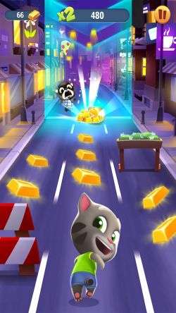 Talking Tom Gold Run will take you on a race to hunt down The Rakoonz - a group of pesky raccoon bandits on a daylight robbery mission! Get ready to run, sprint, and race through the streets in a fun-filled chase.