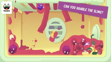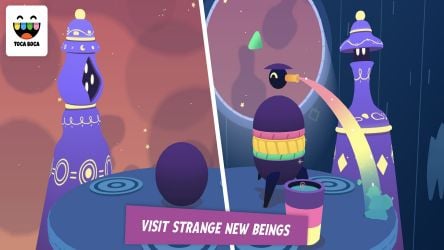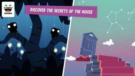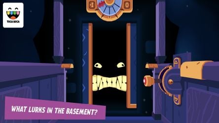 To play TOCA MYSTERY HOUSE, tap the play icon and swipe the screen to see all the areas of the room you enter. Tap on the objects you are interested in: doors, clocks, eyes, windows, anything that catches your eye. Tap the elevator button, tap to enter, pull the lever to descend. Tap on the door to open it. See what surprises are in store (like a disco dancer with no physical presence)! Click the door to close and go to another floor. Step out of the elevator and explore another room, such as the kitchen. By tapping and swiping, you can make potions to feed and change monsters, vacuum clutter in the fridge, descend stairs, solve puzzles for aliens, and more.